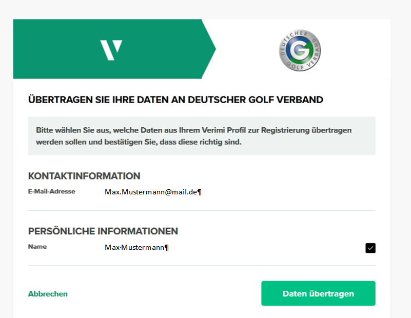 - Sobald Sie die E-Mailadresse und Ihre Daten bestätigt haben, könne Sie die Daten an den DGV übertragen.