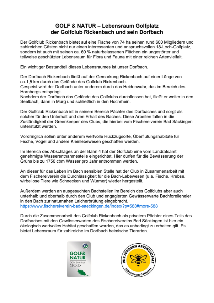 GOLF & NATUR der Golfclub Rickenbach und sein Dorfbach