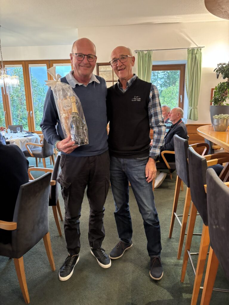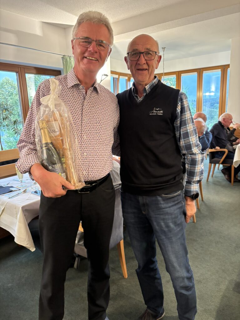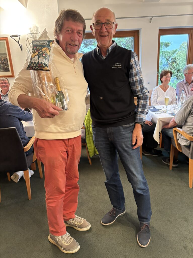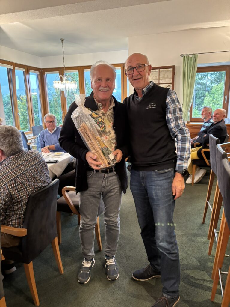 Leider hatte Petrus die Prognosen nicht ganz verstanden und so durften alle Spieler das erwartete kalte Wetter zusammen mit Regen über eine längere Zeitdauer erdulden. Das Halfwayhouse mit den gespendeten Kuchen und Kaffee war ein angenehmer Unterbruch. Bei diesen Bedingungen waren keine hervorragenden Resultate zu erwarten. Wobei die erzielten 24 Bruttopunkte von Gerald Kappler lassen sich gut präsentieren. Nach einer warmen Dusche und trockenen Kleidern konnte ein Apero und ein gutes Essen die Lebensgeister wieder erwecken, so dass bei der Preisverteilung die Sieger mit einem Lachen im Gesicht die Trophäen entgegennehmen konnten.