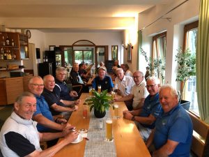 Die Rickenbacher AK65er gut gelaunt nach dem Spiel beim Apero und in aufgeräumter Stimmung nach dem Champions-Dinner.