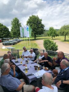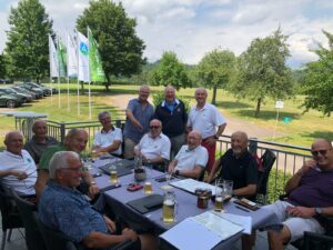 Nach einem Parcours mit 5 verschiedenen Übungseinheiten zum kurzen und taktischen Spiel konnte auch das lange Spiel unter dem sachkundigen Auge des Pros justiert werden. Ein kurzer Regenguss sorgte für angenehmere Temperaturen und eine willkommene Erfrischung für den teilweise betonharten Platz. Die Ergebnisse im Zählspiel liessen sich sehen und beim erfrischenden Bierchen auf der Clubhausterrasse wurde rege über die Platzverhältnisse und das Clubgeschehen diskutiert. Peter Suter, früherer Herrencaptain und an Mitgliedsjahren Teamsenior, offerierte aus aktuellem Anlass (happy Birthday zum 70.) die erste Runde.