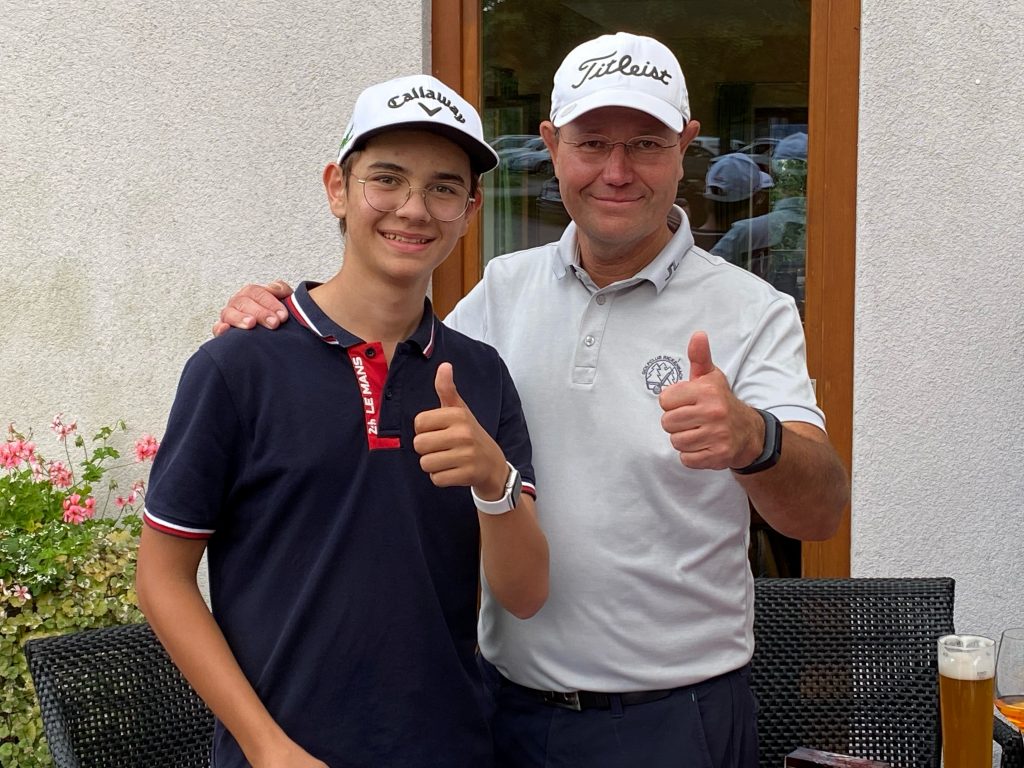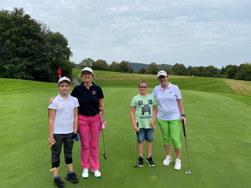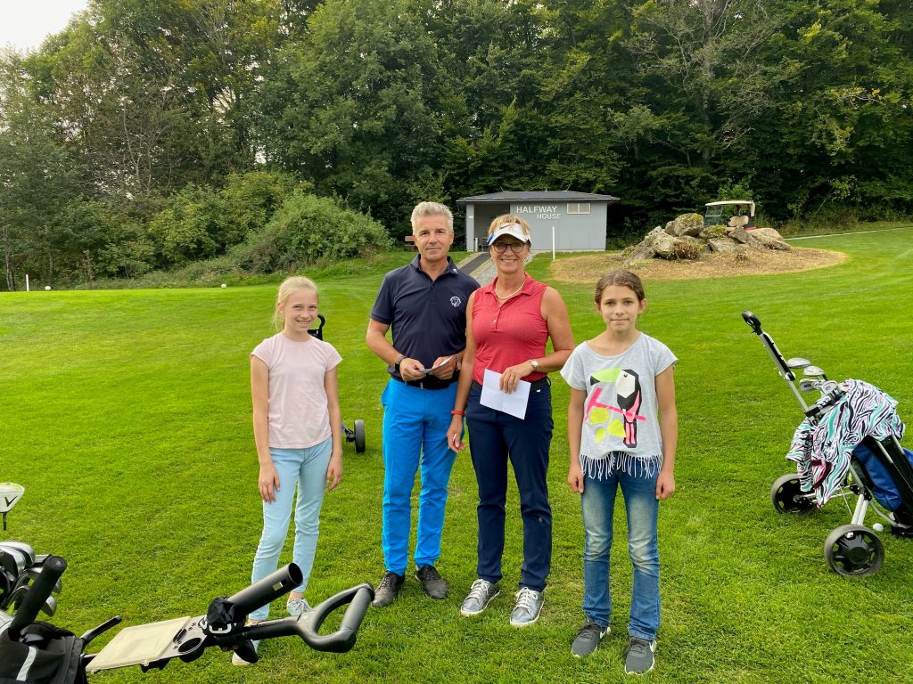 Bei schönstem Spätsommerwetter nahmen dreizehn Kids im Alter von sieben bis sechzehn Jahren am jährlichen Turnier mit den Mannschaftsspielern teil. Nach einer kleinen gemeinsamen Vorstellung aller Spieler wurden die Teams zusammengeführt und Heiko Stotz erklärte den gespannten Kids die Spielform. An den Gesichtern der Kinder konnte man die Gespanntheit regelrecht ablesen. Was würde sie erwarten, mit so guten Spielern ein Turnier zu spielen? Die Anspannung fiel schon am ersten Abschlag, da die Kids schnell merkten, wie locker alle waren und zu Späßen bereit. Nach gemeinsamen 9-Loch, die für den einen oder anderen Nachwuchsspieler doch schon recht anstrengend waren, wurden einige Spieler mit dem Shuttle ins Clubhaus gebracht. Die meisten hatten aber doch so viel Freude und spielten das Loch 10 dann auch noch. Im Clubhaus angekommen folgte der Höhepunkt für alle Kids. Die Preisverleihung mit anschließendem gemeinsamem Essen. Es gab natürlich für alle einen Preis. Auf Platz eins mit 25 Nettopunkten waren Gerald Becher und Sebastian Streckert. Auf Platz zwei mit 21 Netto Punkten Florian Müller und Oliva Berst sowie auf Platz drei Heiko Stotz und Jan Zettler mit 20 Nettopunkten. Herzlichen Glückwunsch.