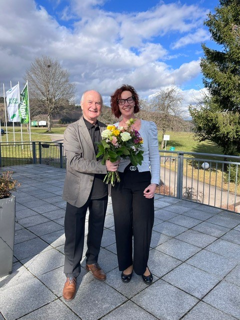 Präsident Roland Supper brachte Michaela einen Blumenstrauß mit und die besten Wünsche für einen erfolgreichen Start, viel Freude im neuen Aufgabenbereich und eine Saison voller zufriedener Gäste.