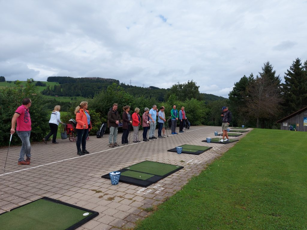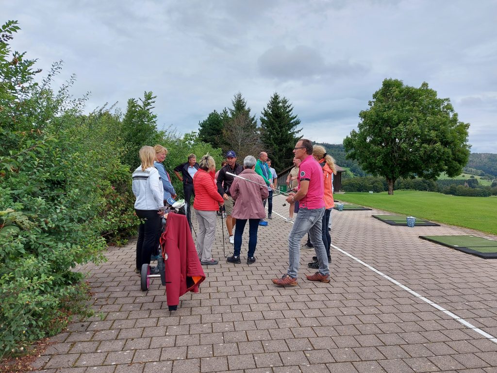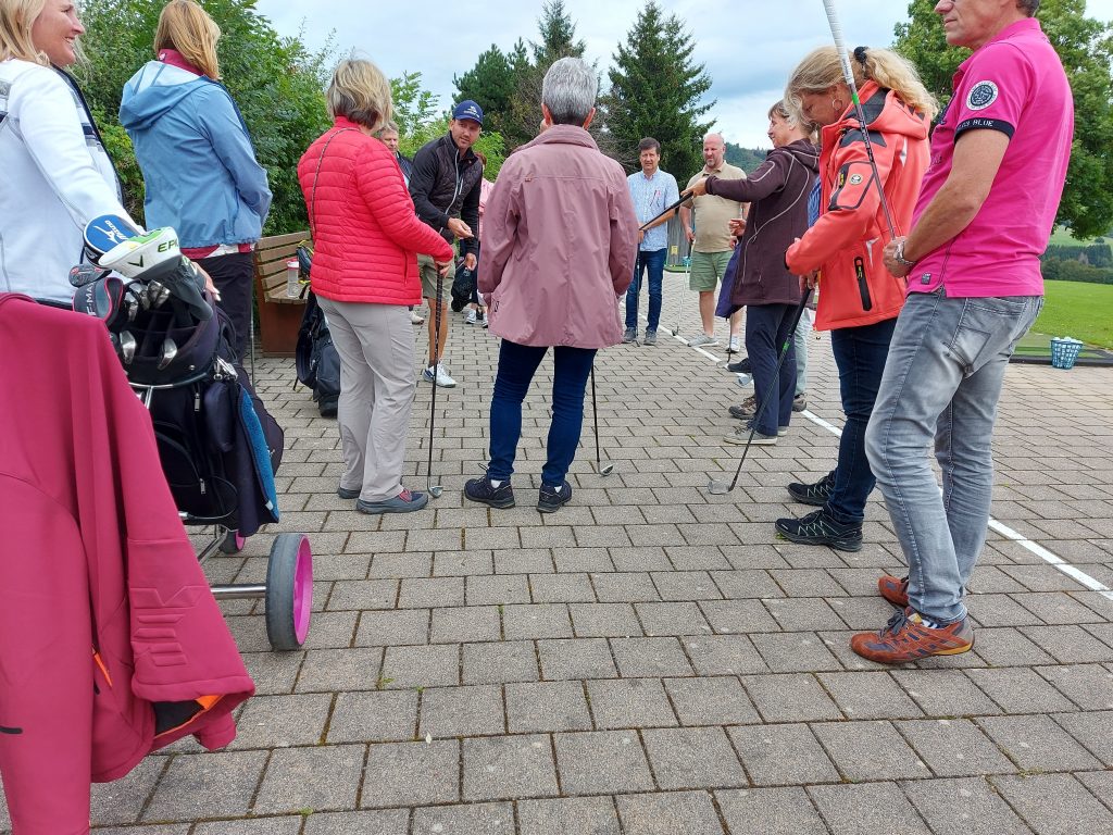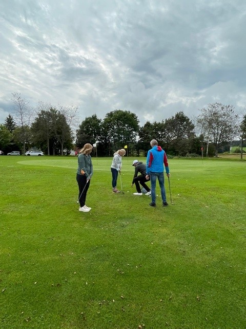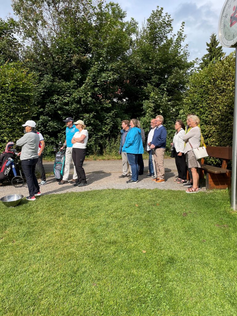 Nach einstündiger Einführung in den Golfschwung durch die Pros Achim und Sebby sowie Assistentin Anna, zückte Präsident Roland Supper dann den Revolver, um den Startschuss für das Spiel auf dem Platz zu geben. Uli Delhey erwartete die Flights auf dem Platz und wie im richtigen Golferleben konnte dort jeder auch einmal den Schläger schwingen und sich von den gigantischen Entfernungen, die der Ball vom Abschlag bis zum Loch zurücklegen muss und vom unfassbar weichen und dichten Rasenteppich der Grüns beeindrucken lassen.