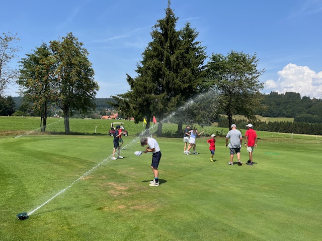 Vom 30.07. – 02.08.2024 nahmen 20 aktive Kinder und Jugendliche im Alter von 7 bis 16 Jahre an der jährlichen Jugendwoche teil. Aufgeteilt in verschiedene Gruppen konnten die Kids auf der Driving Range verschiedene Stationen mit bestimmten Aufgaben absolvieren. Neben einem Longest Drive Contest bis zum Putt Cup über Chippen, Pitchen und Regelkunde mit Etikette, gab es jede Menge Spaß und Neues zu lernen. Das tägliche Turnier auf dem Golfplatz war dann der Höhepunkt für alle. Am Mittwoch, den 31.07. spielte die Jugend um den Preis der Sparkasse Hochrhein. Bei Burger und Pommes und einer anschließenden Regendusche auf dem Chipping Green von den Greenkeepern organisiert, genossen alle Kids den Tag, gesponsort by Sparkasse Hochrhein. Vielen Dank an dieser Stelle.