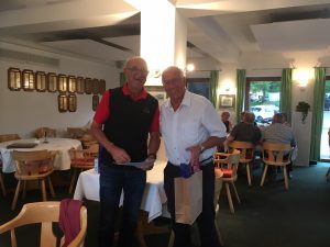 Nach einem von Chander (Srichander Ramaswamy) gesponserten Apéro folgte die Suppe. Wie meistens bei uns Senioren, war der zweite Gang das Rangverlesen. Die Preise – feine deutsche Weine und Bälle – waren von Thomas Nieszner gesponsert. Vielen Dank den Sponsoren!