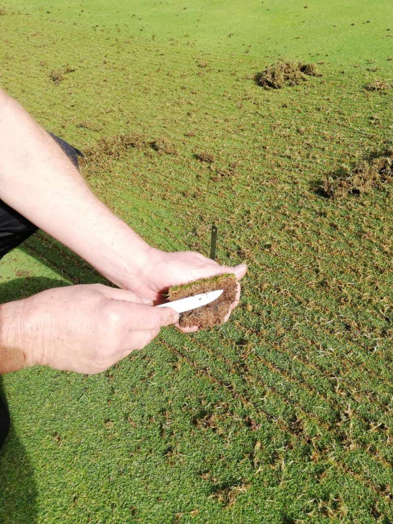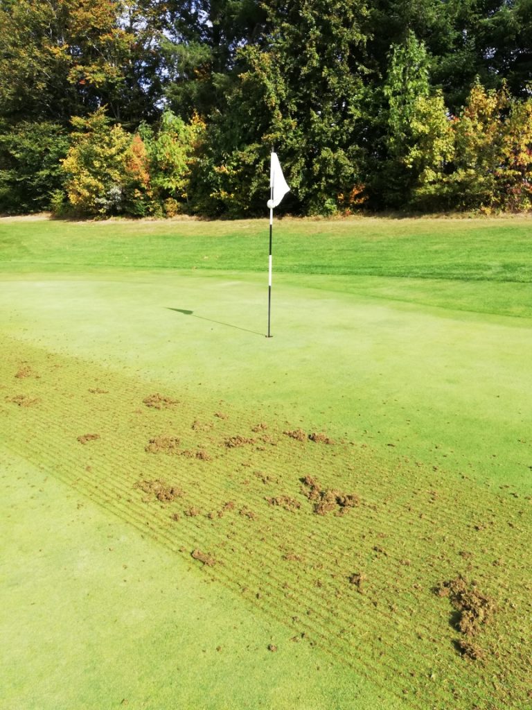 Nach der Saison ist vor der Saison. Anhand der folgenden Bilder, möchten die Greenkeeper verdeutlichen, weshalb das „Schlitzen“ auf den Greens von Nöten ist.