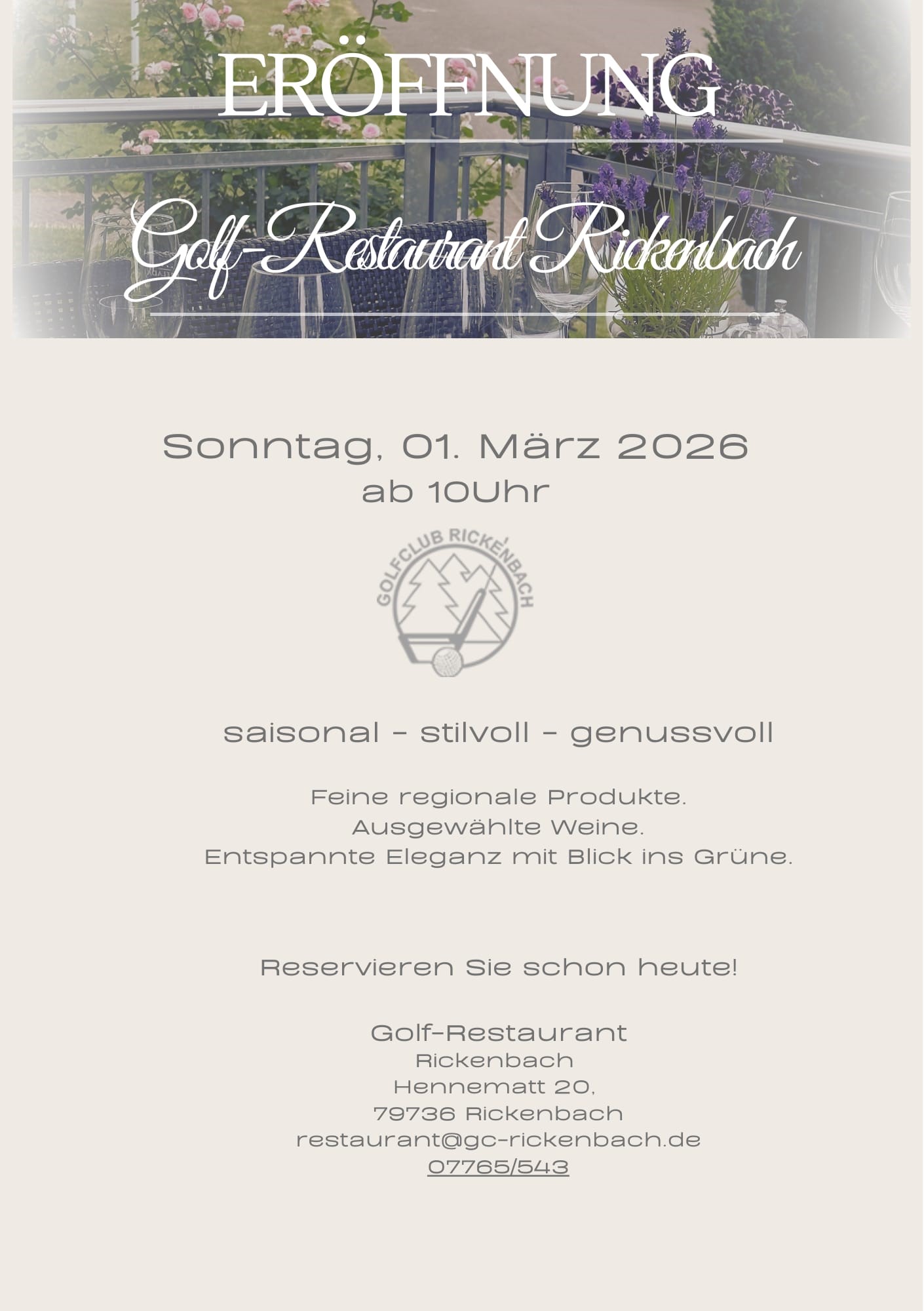Eröffnung des Clubrestaurants im Golfclub Rickenbach – Ein gelungener Start in die Saison