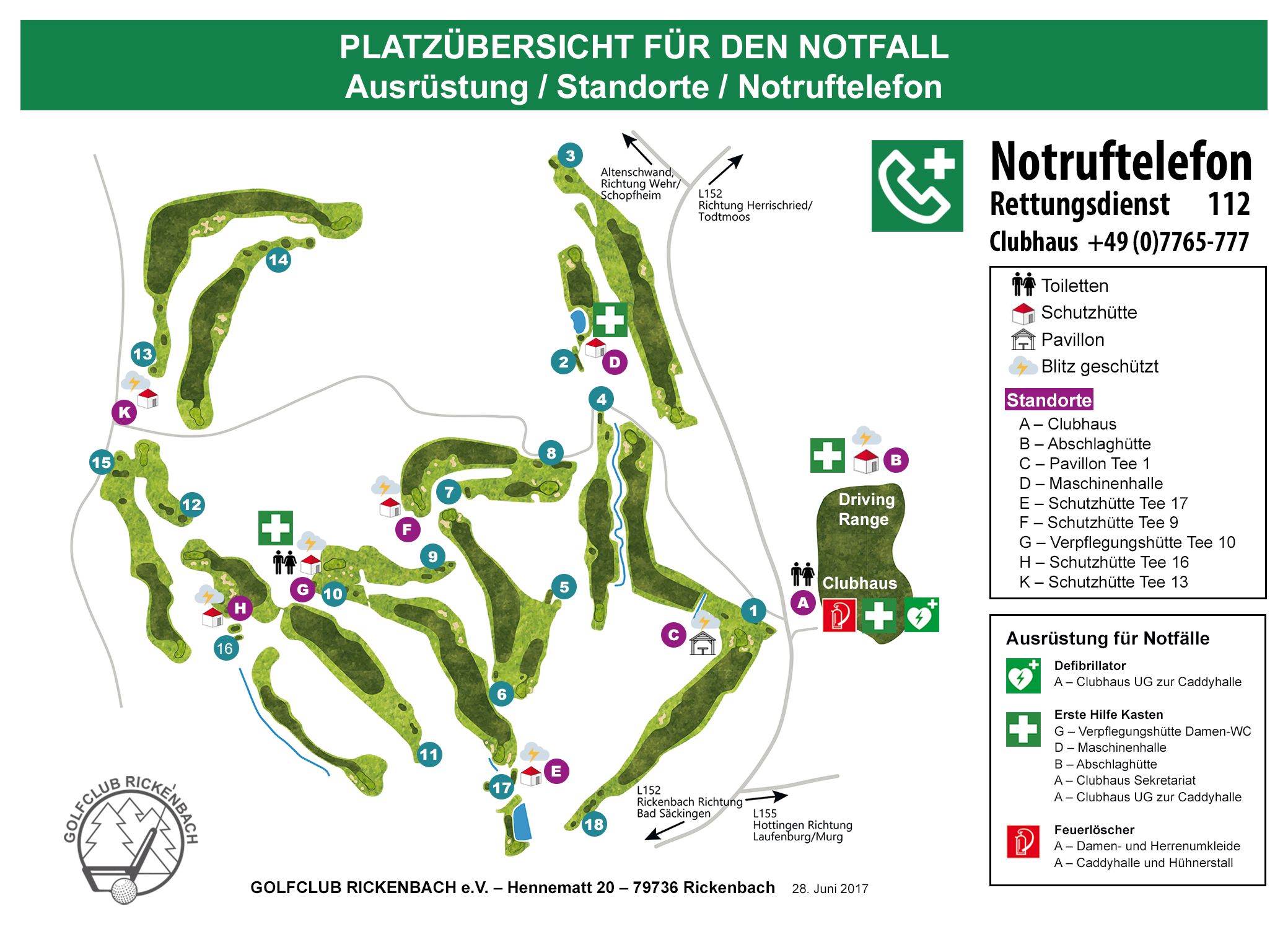 - Blitzschutzhütten: Green8, Green 10/Tee 17, Tee 13/Green 14, Tee 16