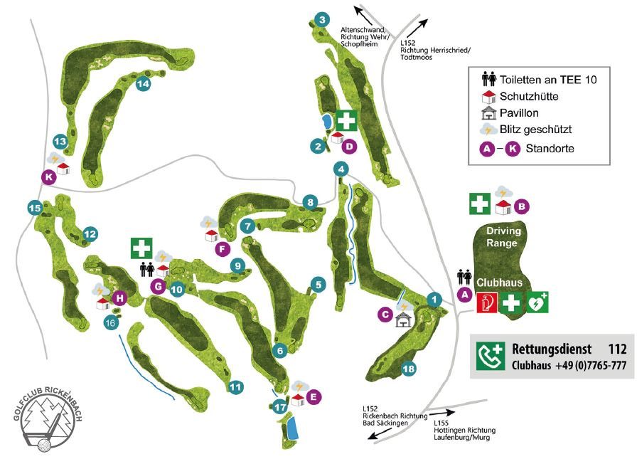 Beim Spiel auf unserer weitgehend naturbelassenen 18-Loch-Anlage befindet man sich mitten in der Natur, ungestört von Verkehrslärm, und kann zudem eine herrliche Aussicht genießen. Das Gelände ist leicht hügelig und häufige Schräglagen der zum Teil schmalen Fairways erfordern präzise Schläge.