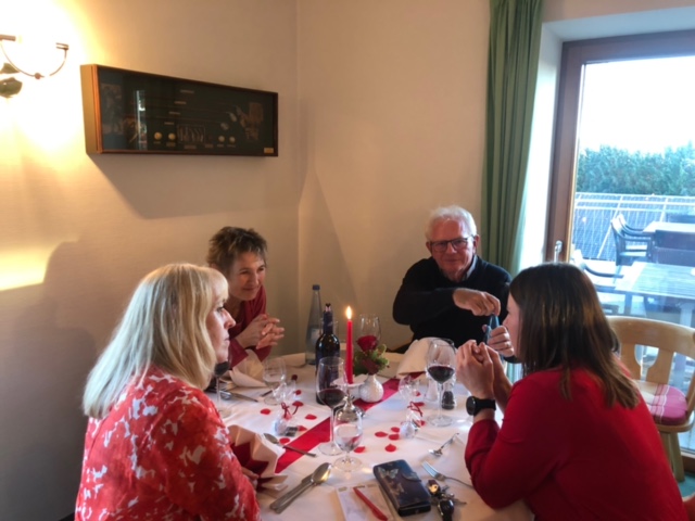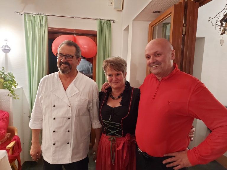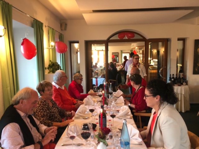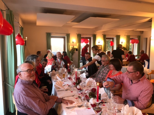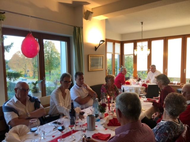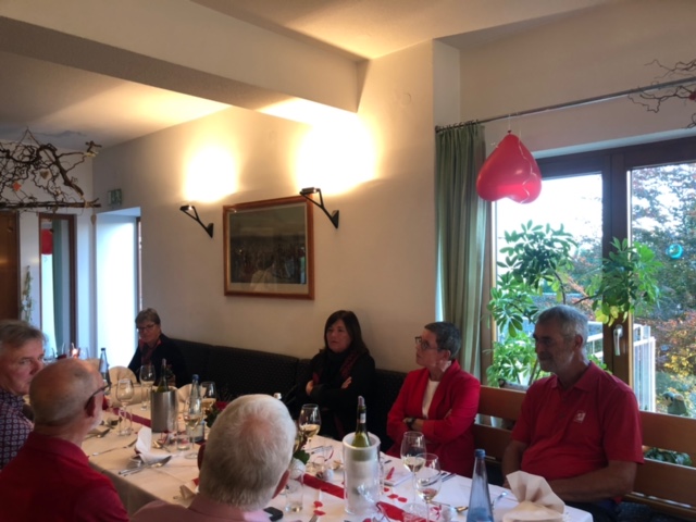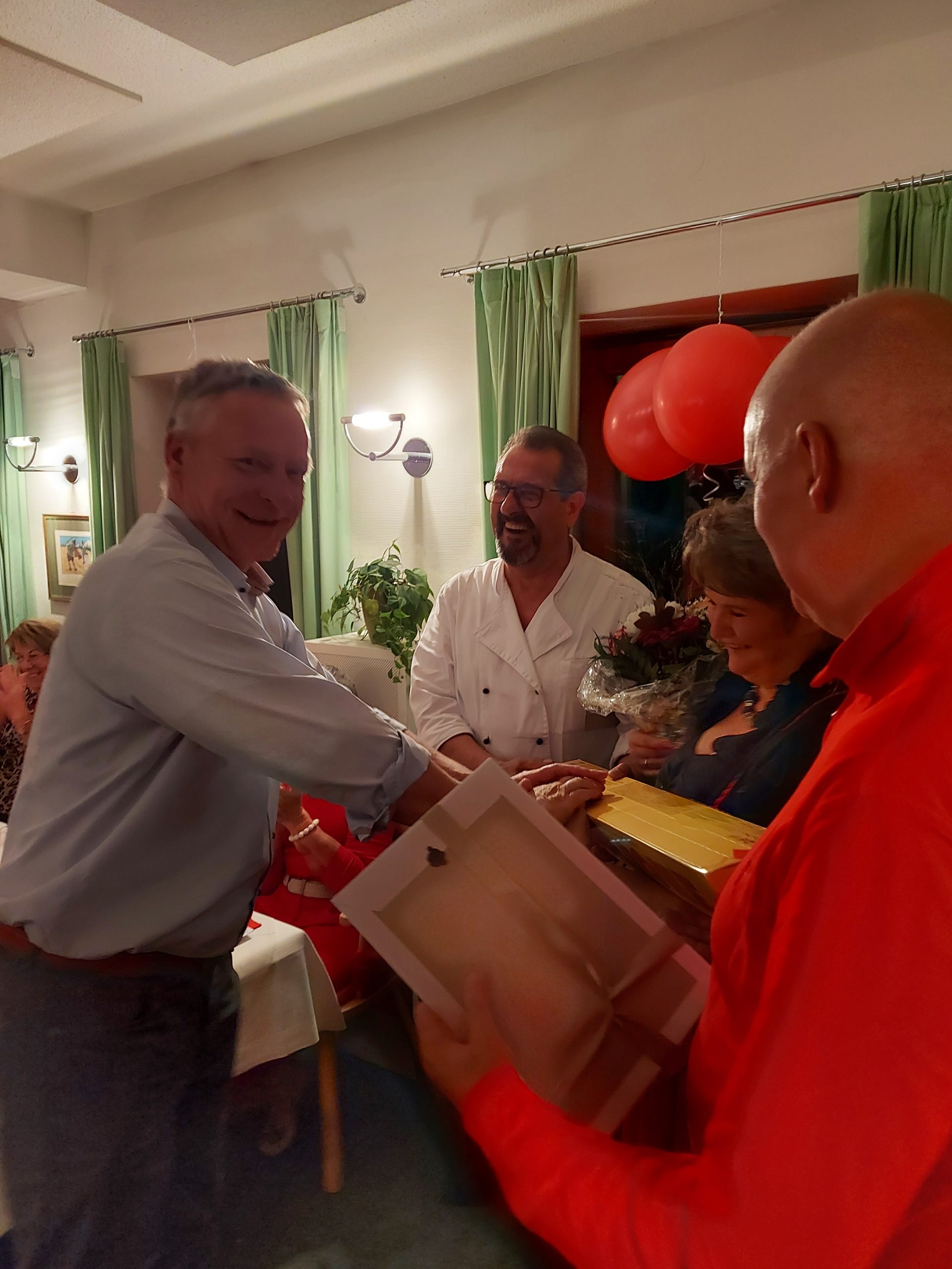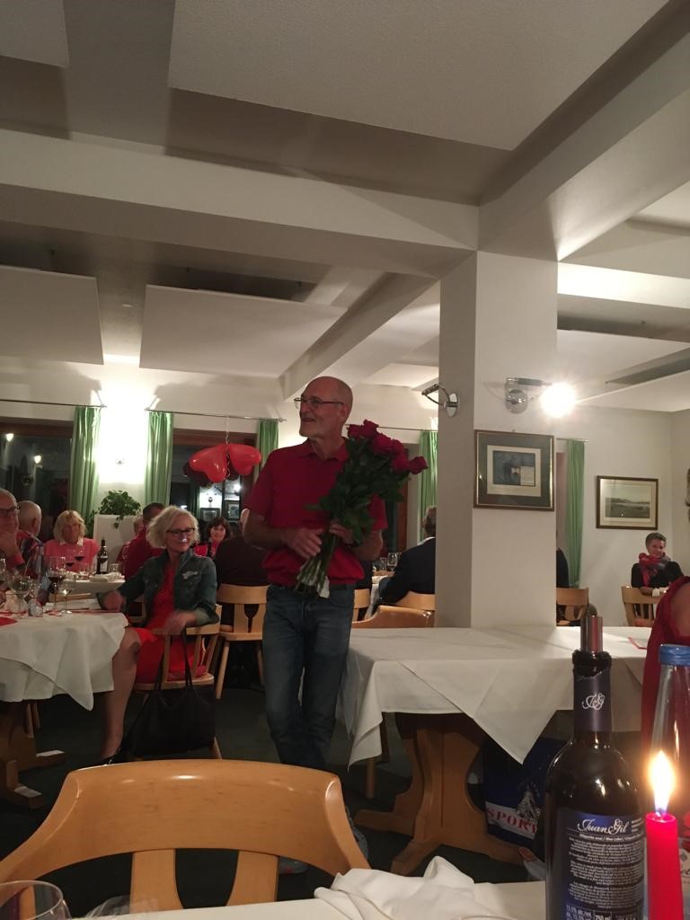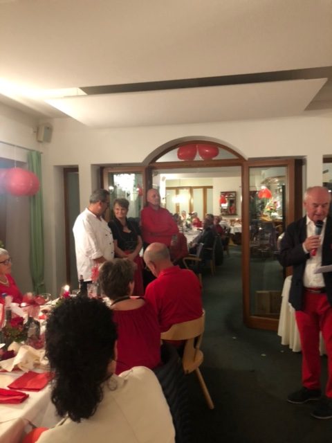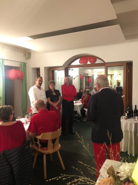 Nach dem Dessert wurden wir von Harald und seinem Team mit einer launigen Rede und einer wunderbaren musikalisch umrahmten Gesangseinlage überrascht, die nach einer „Zugabe“ mit „Standing Ovations“ der Mitglieder herzlich belohnt wurde.