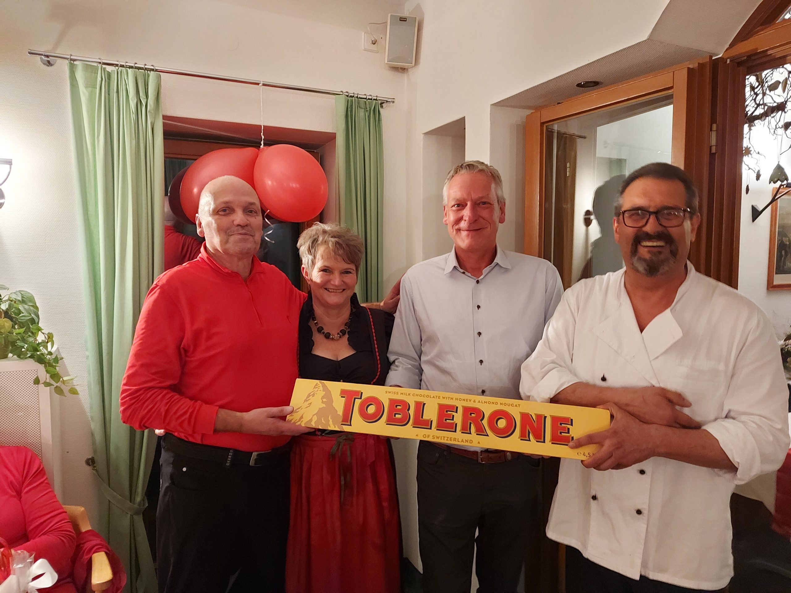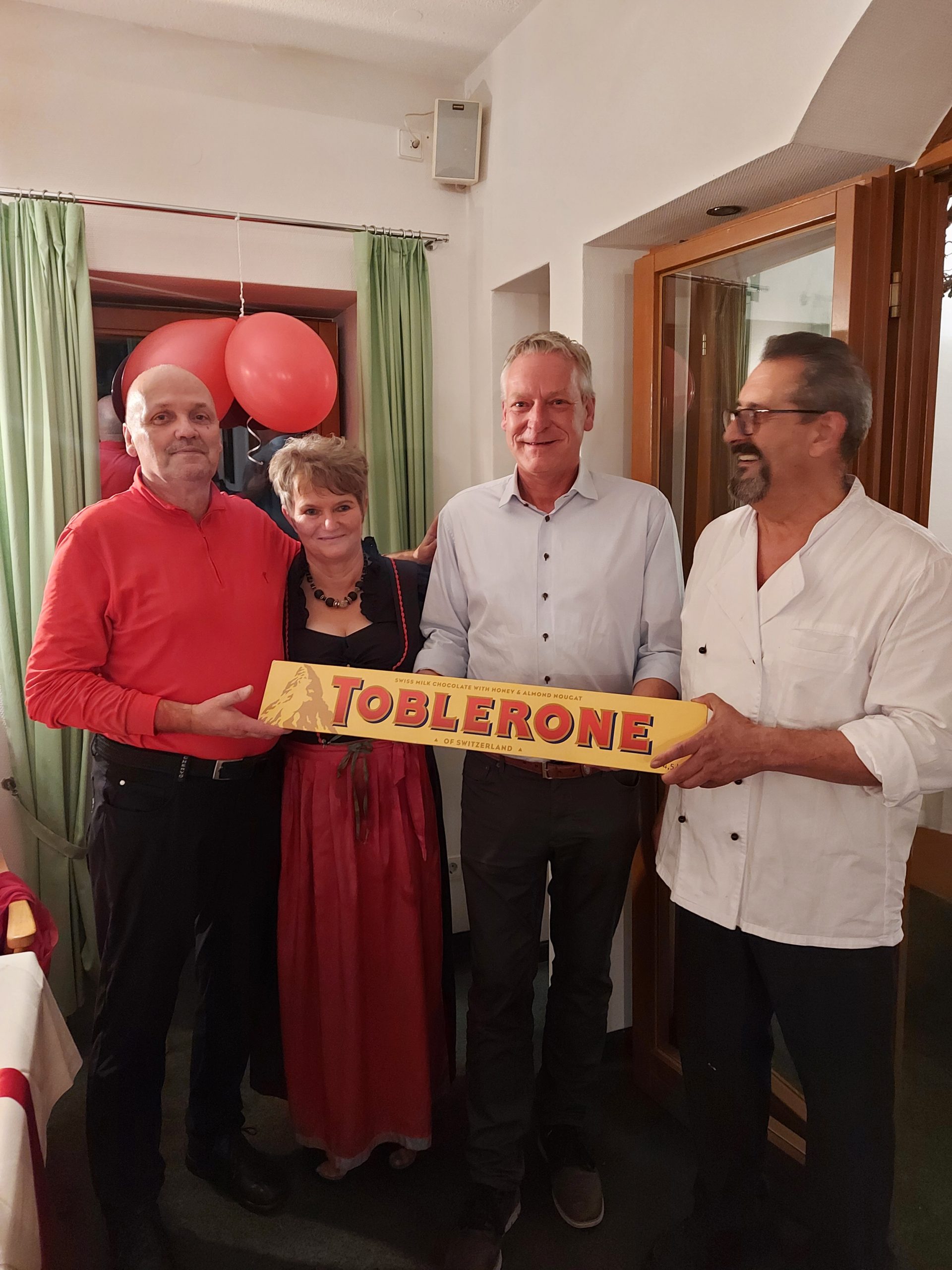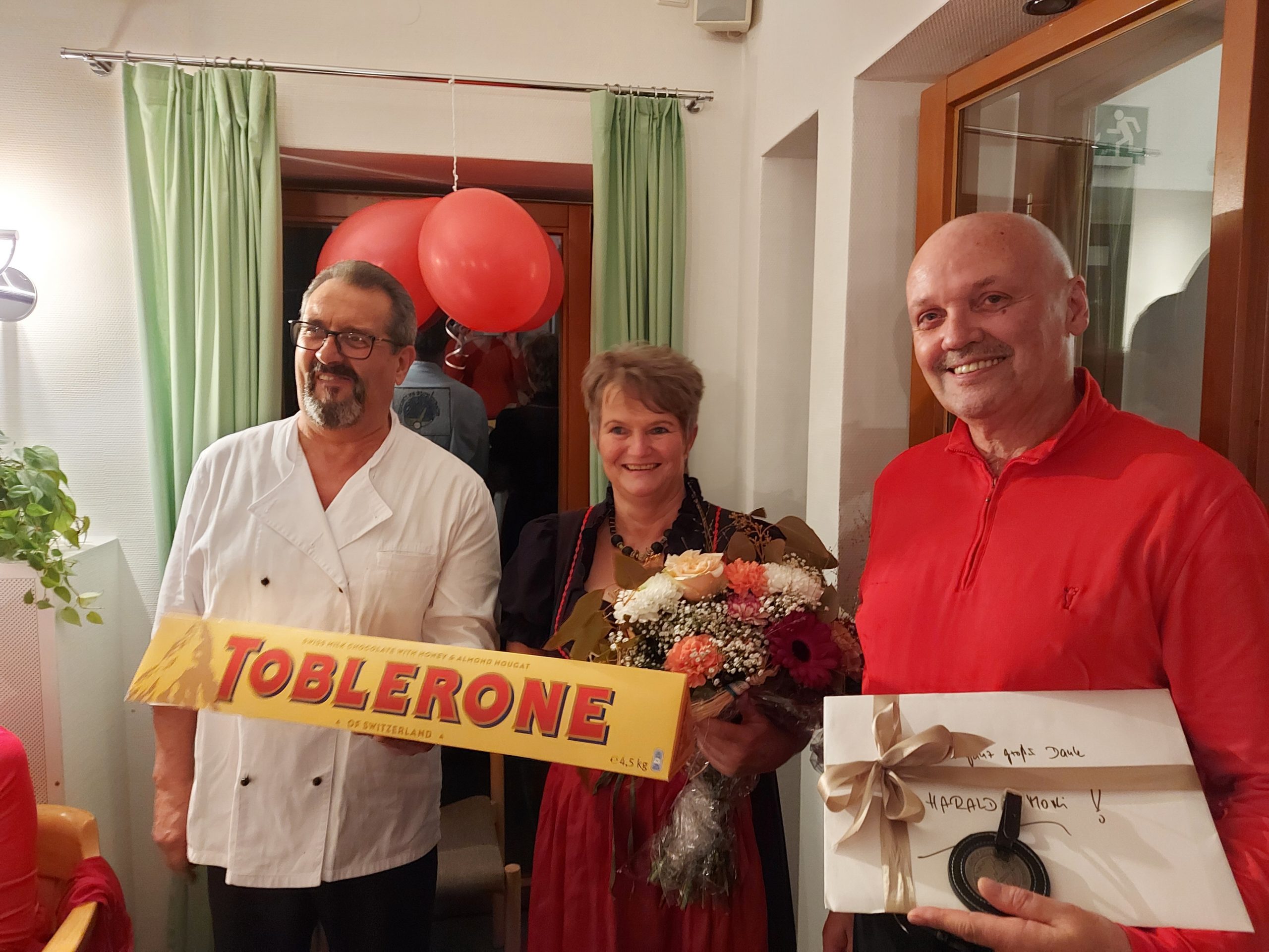 Nach den Ansprachen des Mitgliederausschusses und den Grussworten des Präsidenten hat sich der MA beim Gastro Team mit Geschenken für die jahrelange gute Zusammenarbeit bedankt. Unser spezieller Dank ging an das Pächterehepaar Harald und Monika Scherer sowie Küchenchef Kurt Hauber.
