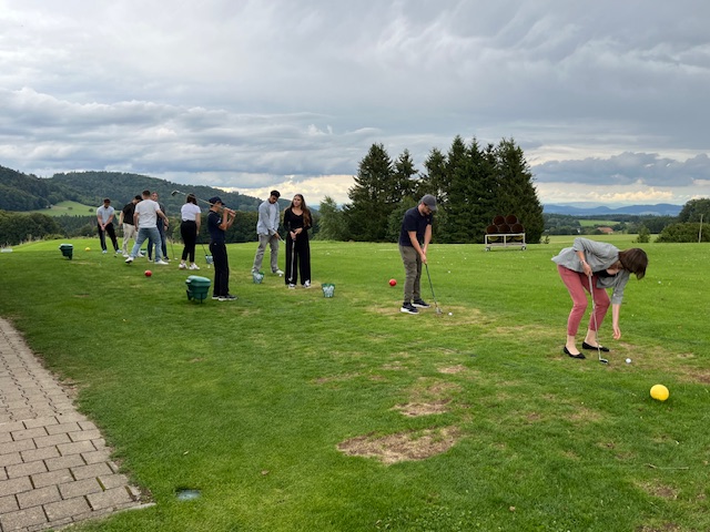 Die Azubis hatten die Gelegenheit, die ersten Golfschwünge zu erlernen und die Faszination des Golfspiels zu entdecken. Mit viel Begeisterung und Engagement schlugen sie die Bälle in die Ferne – einige flogen sogar erstaunlich weit! Es war schön zu sehen, wie schnell die Freude am Spiel aufkam und wie viel Spaß alle dabei hatten.