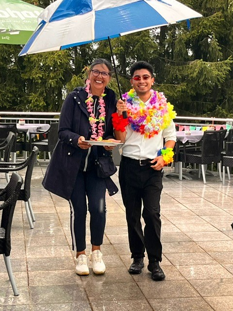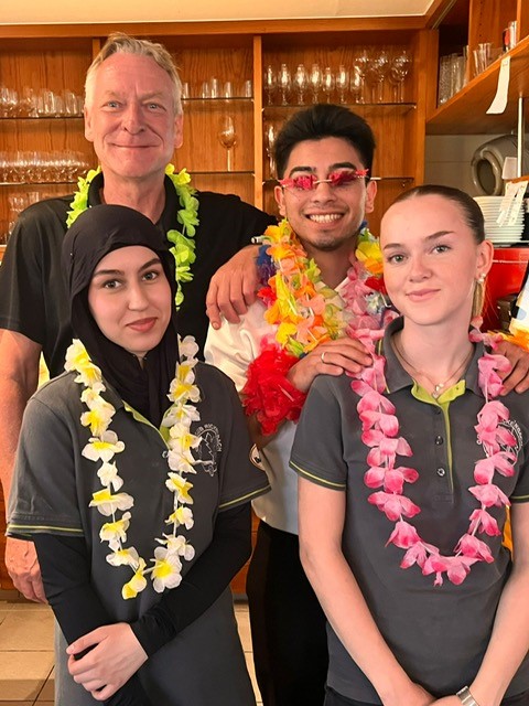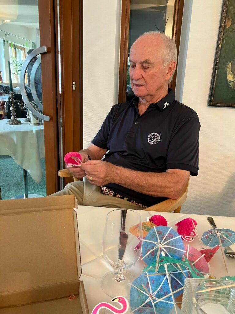 Nach dem Turnier empfing Thomas Goosmann mit seinem Team die Teilnehmer mit einem erfrischenden Apèro. Dabei hatten die Golferinnen und Golfer ausgiebig Gelegenheit, ihre Golfrunde mit den anderen Spielern auszutauschen und zu besprechen. Zur ausgezeichneten Stimmung trug ebenfalls der von Nicole Beckereit und Stéphanie Supper sehr schön ausgeschmückte Gastraum bei. Beide haben auch mit leckeren Snacks den Apèro angereichert.