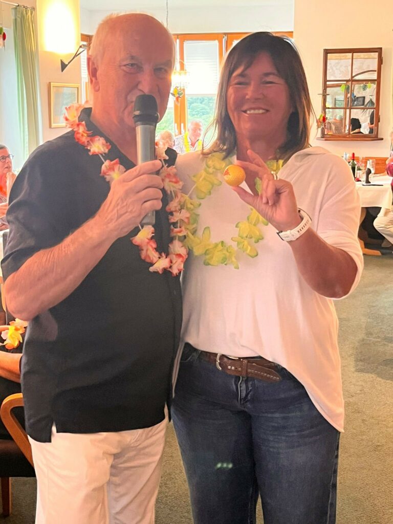 Als kleiner Höhepunkt wurden unter den Teilnehmerinnen und Teilnehmern noch ausgelost, wer an den neuen Bahnen zu Beginn der nächsten Saison die ersten Abschläge machen darf. Glücksfee war Christine Zäpernick: