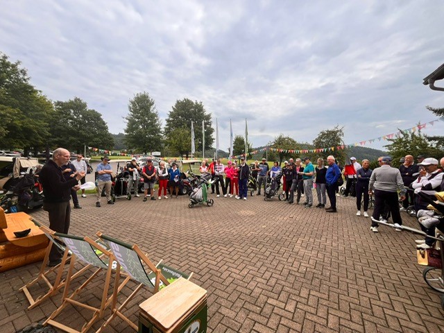 Mehr als 60 Golfer und Golferinnen wurden vom Mitglieder-Ausschuss (MA) auf der Terrasse vor dem Clubhaus herzlich begrüsst. Zu unserem grossen Glück trafen die Wetterprognosen der „Wetterfrösche“ nicht ein und wir erlebten einen sehr schönen und vor allem trockenen Golftag.