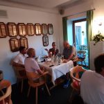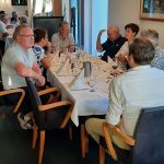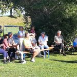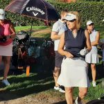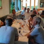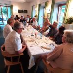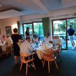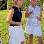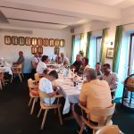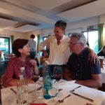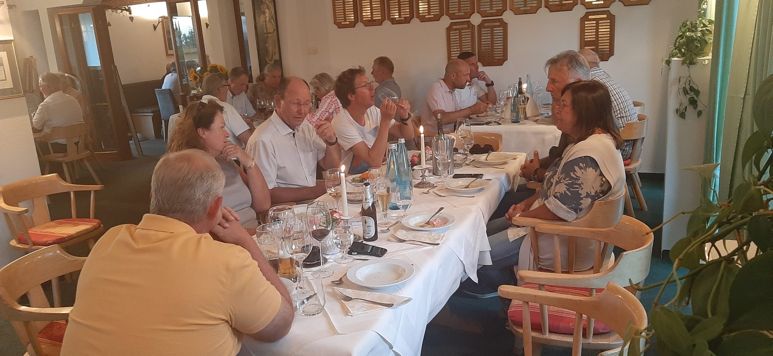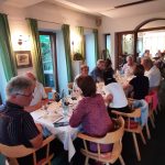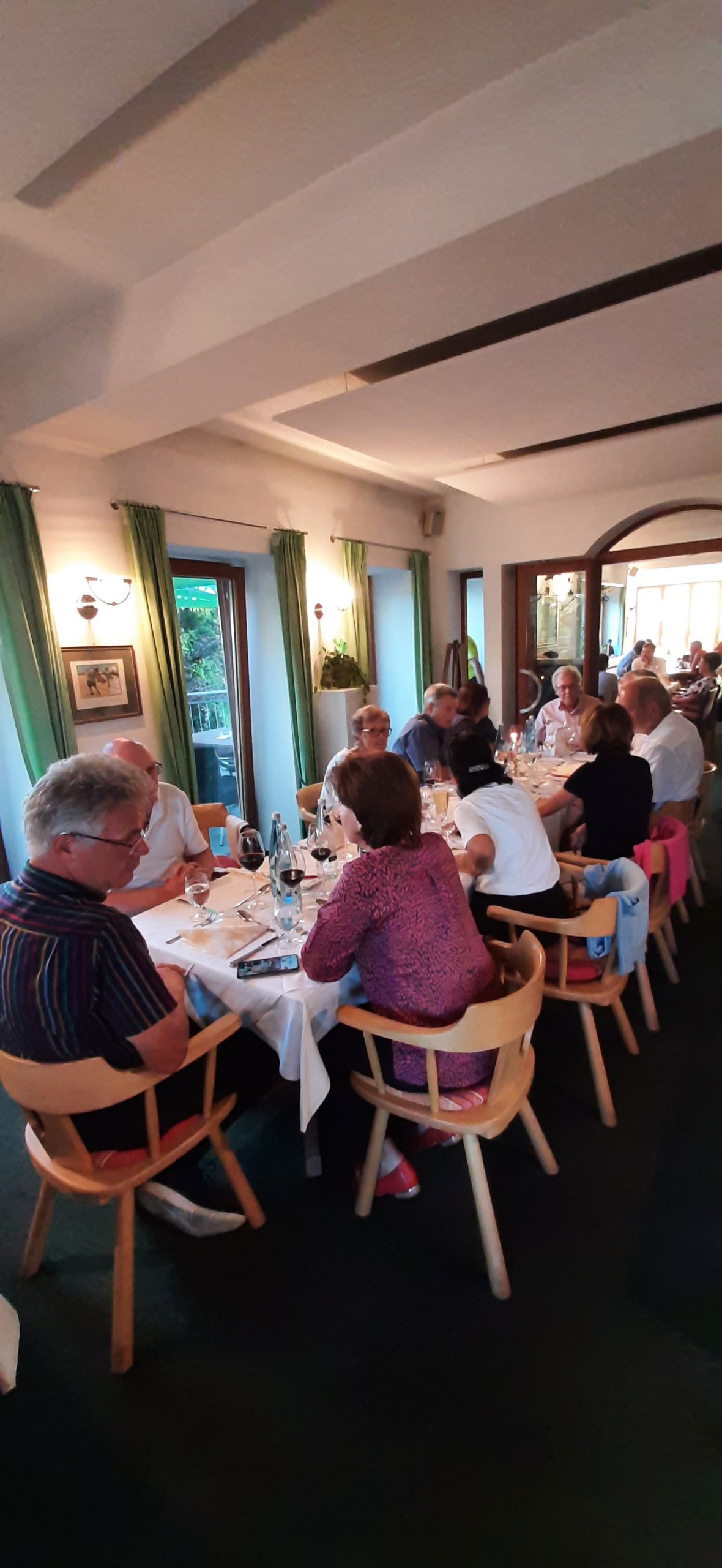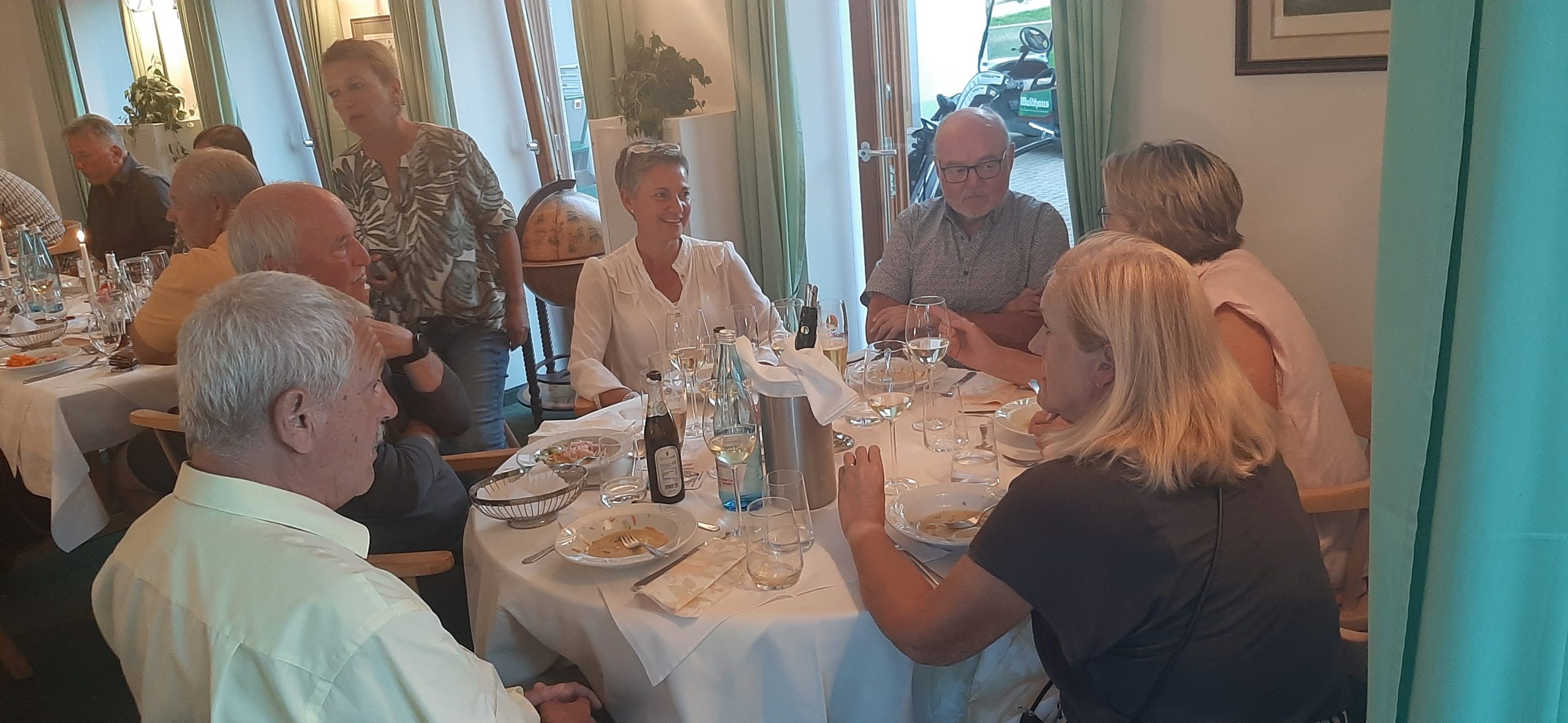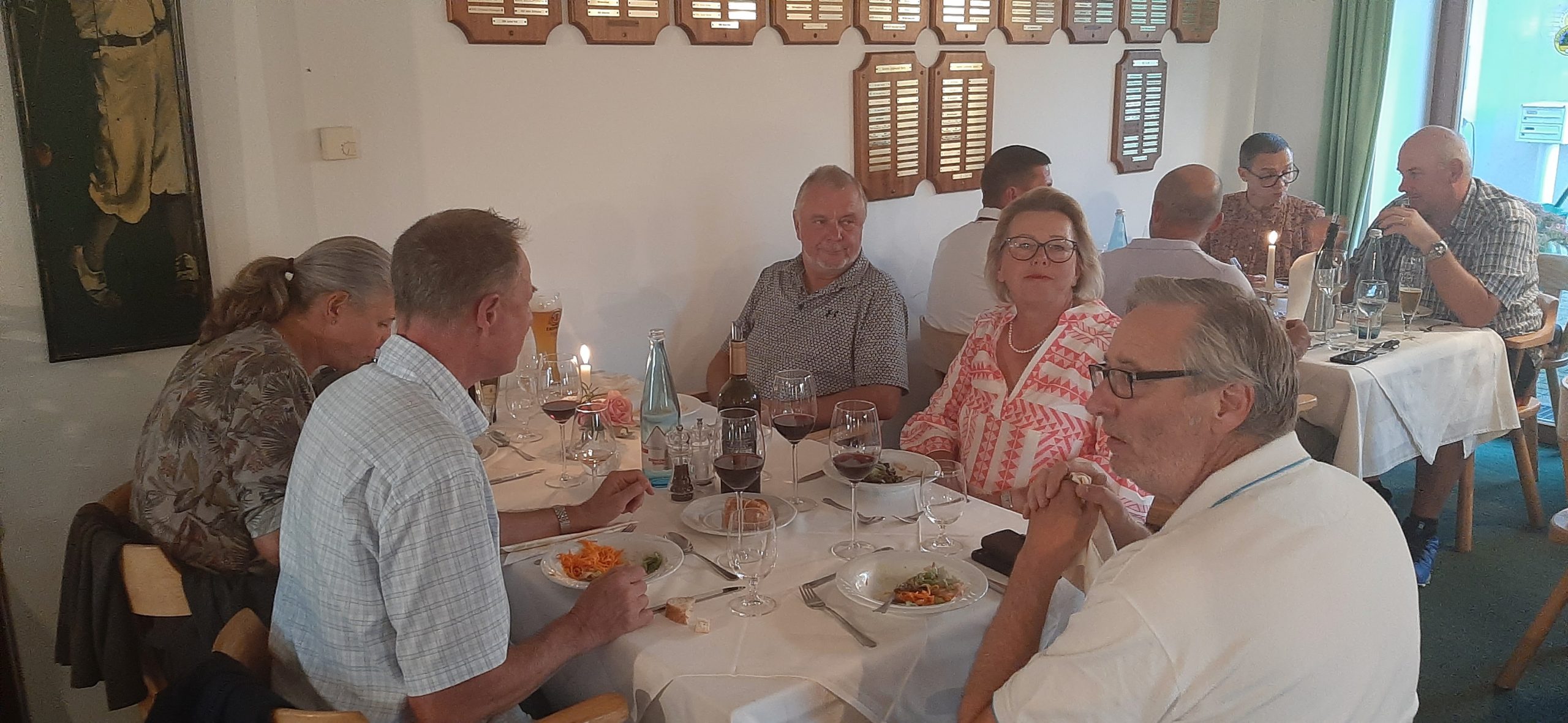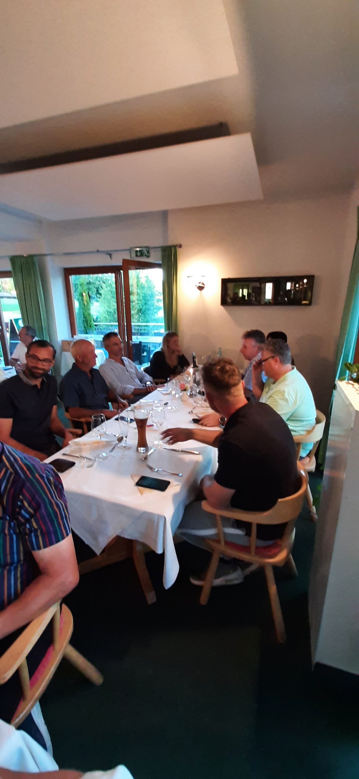 Mit Spannung erwarteten Teilnehmer und Gäste die Rückkehr der Aktiven von ihrer 3. Runde an Grün 18. Bei gekühlten Getränken bester Stimmung wurde das Live-Scoring aufmerksam verfolgt und die Schläge der Spieler wurden mit Applaus belohnt. Die Spannung begann zu knistern, als sich an Loch 17 ein Führungswechsel bei den Damen abzeichnete, der dann am Schlussloch in einem Gleichstand endete. Die beiden Favoritinnen Ursula Bühler und Helga Schweigler-Zimmermann (im Bild 4. von rechts) mussten anschliessend die Entscheidung in einem Stechen an Loch 18 herbeiführen. Beim ersten Extraloch konnte sich Helga durchsetzen und den Clubmeistertitel erringen. Heiko Stotz (2. von links) konnte seinen Titel vom Vorjahr souverän verteidigen und spielt zudem auch die beste Runde mit 75 Schlägen. Die Clubmeistertitel der Senioren errangen Gerda Kappler (3. von links) und Marcel Weiss (1. von rechts). In der neuen Kategorie „Netto“ durften Pia Canzoneri (2. von rechts) und Michael Wladarz (4. von rechts) die begehrten Pokale mit nach Hause nehmen. Die Siegerehrung in Rahmen des Championsdinner nahmen Präsident Roland Supper (3. von rechts) und Spielführer Markus Oehl (1. von links) vor.