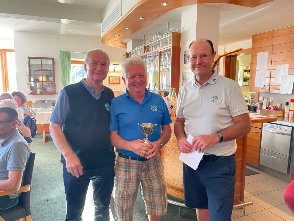 Entgegen der Wetterprognosen zog am Nachmittag ein heftiges Gewitter auf und zwang die letzten 3 Gruppen der Aktiven zu einer 45 minütigen Gewitterunterbrechung, zwei davon in der Hütte an Abschlag 17. Nachdem alle nach einem Kaltstart das Spiel dann beendet hatten , musste bei den Herren AK 65 noch ein Stechen an der Bahn 18 gespielt werden . Dieses entschied Kurt Thomann gegen Marcel Weiss für sich.
